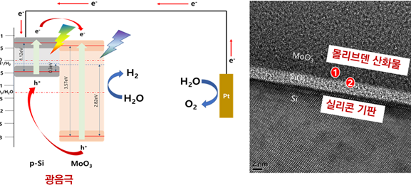 우리 학교 서형탁 교수 연구팀이 태양광을 이용한 친환경 수소 생산에 활용될 수 있는 기반 기술을 개발했다. 수소는 대표적 청정 연료로 차세대 에너지원으로 주목받고 있으며, 최근 전기나 태양광을 이용해 수소를 생산하는 기술 연구가 활발히 진행되고 있다. 서형탁(신소재공학과·대학원 에너지시스템학과, 사진) 교수팀은 물 분해 수소 생산 효율과 내구성이 크게 향상된 실리콘 기반의 태양광전기화학 광음극을 개발하는데 성공했다고 밝혔다. 관련된 내용은 화공 촉매 분야의 저명 국제 학술지인 12월24일자 온라인 최신호에 소개됐다. 우리 학교 샨카라 칼라누르(Shankara S. Kalanur) 교수와 박사과정의 유일한 연구원이 함께 참여했다.수소는 수소 연료 전지에 적용되어, 연료 사용 후 물이 배출되는 대표적 청정 연료원이다. 이에 수소는 수소전기차 뿐 아니라 발전과 에너지 저장 등 산업 전반으로 활용 영역이 확장되고 있다. 수소의 생산은 화석연료의 구조를 변화시키는(개질) 방식으로 주로 이루어지고 있으나, 수소 생산 중량의 9배가 넘는 이산화탄소도 함께 배출되는 점이 한계로 지적되어 왔다. 이에 최근 전기나 태양광을 이용하는 광·전기 화학적 물 분해 기술 연구가 활발히 진행되고 있다. 서형탁 교수팀이 개발한 기술은 실리콘 기반의 태양광 전기화학 광음극으로, 반도체 소자나 태양전지에 널리 쓰이는 실리콘 및 산화물 적층 구조를 활용했다. 실리콘은 이미 태양전지에 널리 활용되는 소재이지만, 물 분해와 같은 전해질 수용액 환경에서는 효율이 떨어지고 쉽게 부식되어 사용이 어려웠다.서 교수는 “최근 전기나 태양광을 활용하는 광·전기 화학적 물 분해 기술 연구가 활발히 진행되고 있지만, 기존 화석 연료 개질 방식에 비해 생산 효율이 매우 낮다는 문제가 남아 있었다”며 “하지만 이번 연구에서 저가이며 범용 소재인 실리콘과 몰리브덴 산화물 박막 적층 구조를 광음극으로 적용해 표면에서 수소를 직접 생산해내는데 성공했다”고 말했다.이 기술의 핵심은 태양광이 반도체 광전극에 입사할 때 생성된 전하를 이용해 물을 분해하는 것이다. 기존 연구에서는 광전기 물 분해 전극 중 주로 양극에서 빛을 흡수하는 광양극에 대한 연구가 진행되어 왔으나 서 교수팀은 광음극에 주목했다.아주대 교수 연구팀이 제작한 실리콘과 몰리브덴 산화물 광전극의 (좌)전자 밴드 구조와 작동 원리 및 (우)투과 전자현미경 이미지연구팀은 물 분해 같은 전해질 수용액 환경에서 쉽게 부식되고 효율이 떨어지는 실리콘의 단점을 극복하기 위해, 표면 전위를 제어해 태양광에 의해 형성된 광전하를 정확한 방향으로 분리하는데 성공했다. 또 산화물을 화학적으로 안정된 실리콘 보호막으로도 활용, 전해질 용액에 의한 부식을 획기적으로 개선했다. 서형탁 교수는 “실리콘 표면에 증착된 몰리브덴 산화물 박막의 정밀 조성 최적화 핵심 원천기술을 확보했다”며 “이에 실리콘 단일 소재 광음극 대비 광전류 효율은 6배, 12시간 연속 수소 생산 전극 내구성은 8배 개선할 수 있었다”고 전했다.연구팀은 앞으로 태양광 에너지만을 이용한 자가 전력 물분해 수소 생산의 실용화 기술 개발을 위해 연구를 이어갈 계획이다. 이번 연구는 한국연구재단의 이공학 기초 연구 지원사업(기본연구 및 중견연구자 지원사업)의 지원을 받아 진행됐다.