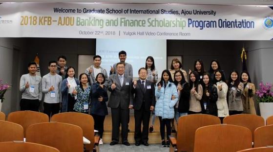 ‘2018 은행연합회-아주대 캄보디아 금융인력 양성과정’ 입학식 및 오리엔테이션이 지난 22일 율곡관 영상회의실에서 열렸다. 전국은행연합회와 우리 학교 국제대학원은 캄보디아에 진출한 한국계 은행의 금융인력 양성을 위해 단기 장학 프로그램을 운영하고 있다.입학식과 오리엔테이션에서는 국제대학원 임재익 원장, 경영학과 김용기 교수의 축사와 함께 과정 전반에 대한 소개 및 참가자 소감 발표 등이 진행됐다.전국은행연합회와 국제대학원은 지난 2017년 9월 협약을 통해 캄보디아에 진출한 한국계 은행의 금융인력 양성을 위한 단기 장학 프로그램을 신설했다. 2017년 10월부터 2018년 3월까지 1기 프로그램을 운영했고, 현재 2기 프로그램을 운영 중이다. 이 과정은 캄보디아에서 영업을 확장하고 있는 한국계 은행들의 안정적 신규 인력 확보를 돕고, 캄보디아의 빈곤 퇴치 및 경제 발전에 이바지하는 데 목적을 두고 있다.장학 프로그램은 6개월 동안 진행된다. 15명의 참가자들은 첫 9주 동안 아주대학교 국제대학원에서 금융 리스크 및 금융 관련 IT 지식을 배운 후 본국으로 돌아가 캄보디아 프놈펜 소재 한국계 은행에서 3개월 동안 인턴으로 근무할 예정이다.