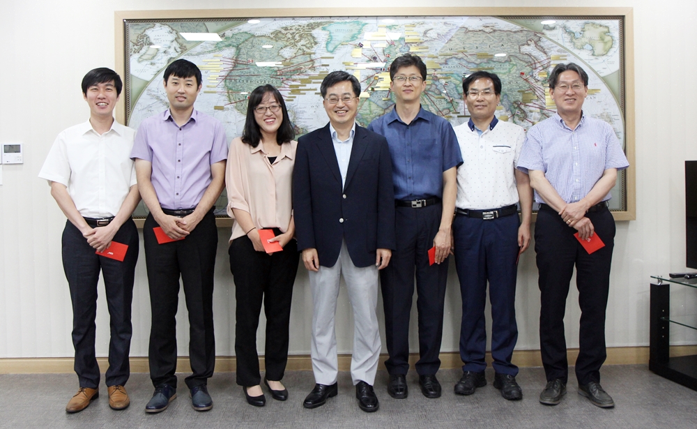 시설팀이 이달의 부서로 선정됐다. 시상은 25일 총장실에서 열렸으며 김동연 총장과 부총장 등 보직교수들이 축하와 격려의 인사를 전했다. 시설팀은 방학중에 집중되는 시설 개보수 공사들에 대해 사용자들의 만족도를 높이는 동시에 원가분석을 통한 시공비용을 절감하는 등 합리적인 방식으로 업무를 수행해왔다. 특히, 연구마을 기업부설연구소 입주공간 조성사업은 촉박한 일정에도 적시에 공사를 완료해 사업시행의 토대를 구축하는데 기여했다. 한편, 김동연 총장은 "시설팀 직원들이 드러나지 않는 곳에서 직무에 충실히 임해줘 고맙게 생각한다"며 근무로 인해 일부 직원들만 참석한 점을 아쉬워하며 “꼭 감사의 뜻을 전해달라”고 당부하기도 했다. 시설팀은 안재현 팀장을 비롯해 이선형, 최창기, 홍영수, 신정철, 오기환, 이기홍, 김시천, 신정수, 김권기, 정영근, 신형섭 직원 등 총 12명으로 구성되어 있다.