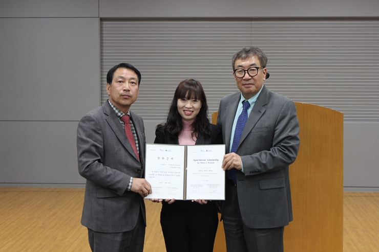 2016학년도 대우장학 수여식이 31일 오전 11시 율곡관 영상회의실에서 열렸다. 대우장학은 1993년부터 23년째 단과대학 학년별 수석에게 등록금 전액을 장학금으로 지급하고 있으며 올해에는 총 38명이 대상자로 선정됐다. 수여식에는 추호석 대우학원 이사장을 비롯해 대우장학재단 이사진, 각 대학 학장과 처장 및 관계자 그리고 장학생들이 참석했다. 행사는 조재형 학생처장의 대우장학 현황보고, 대우장학 영상 시청, 장학증서 전달, 장학생 대표 선서와 감사의 글 낭독 그리고 축사의 순으로 진행됐으며 대우장학재단 이사들의 격려인사도 이어졌다. 안치남(화학과,4) 학생은 “성실히 보낸 지난 학기의 성과가 전액 장학으로 돌아와 뿌듯하다. 졸업 후에 받은만큼 학교에 환원할 수 있도록 노력하겠다”고 장학생 대표로 감사의 뜻을 밝혔다. 추호석 이사장은 격려사에서 “성을 쌓으면 망하고 길을 놓으면 흥한다는 말처럼 장학생들이 단순한 금전적 지원에 만족하지 않고 원대한 꿈을 실현하는 계기가 되었으면 한다”고 말했다. 김동연 총장도 장학생들을 축하하며 “실력은 갖춘 대우장학생들이 매력도 함께 키웠으면 한다. 자신의 내면을 끄집어내 가치를 창출해낼 수 있는 사람이 되어주길 바란다”고 당부했다. ▲ 공과대학 송지훈(화학공학과,4), 박의균(기계공학과,2), 박소정(응용화학생명공학과,3), 최준원(화학공학과) ▲ 정보통신대학 신익재(전자공학과,1), 좌은지(미디어학과,2), 오동식(전자공학과,3), 안원혁(소프트웨어융합학과,4) ▲ 자연과학대학 이재협(수학과,1), 장현태(수학과,2), 심기전(수학과,3), 안치남(화학과,4) ▲ 경영대학 박종혁(e-비즈니스학과,1), 김나현(경영학과,2), 최상현(e-비즈니스학과,3), 박찬솔(4,경영학과) ▲ 인문대학 이룩한(영어영문학과,1), 강수민(문화콘텐츠학과,2), 유민정(불어불문학과,3), 임예은(영어영문학과,4) ▲ 사회과학대학 남민주(심리학과,1), 김가영(경제학과,2), 이지현(행정학과,3), 오병준(경제학과,4) ▲ 약학대학 윤태웅(약학과,1), 김소연(약학과,2), 김다혜(약학과,3), 김미정(약학과,4) ▲ 의과대학 서상현(의학과,1), 성지수(의학과,2), 이해인(의학과,3), 김민지(의학과,4), 허율강(의학과,5), 문성지(의학과,6) ▲ 간호대학 유희재(간호학과,1), 박찬양(간호학과,2), 김동연(간호학과,3), 유성희(간호학과,4)