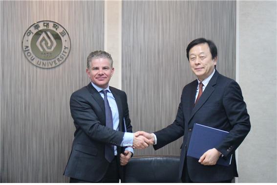 신산업융합기술연구센터(센터장 이주연)가 지난 10일 오전 교내에서 미래형 가상현실(VR,virtual reality)분야의 세계적 선도기업인 이온리얼리티(Eon Reality)와 협약을 체결했다. 신산업융합기술연구센터는 이번 협약에 따라 이온 리얼리티가 보유하고 있는 세계 최고 수준의 체험형 가상현실(VR)기술을 바탕으로 공동 연구개발(R&D)과 교육협력, 인터렉티브 디지털 센터(IDC)의 국내 건립에 대하여 협력할 계획이다. 이날 협약식에는 신산업융합기술연구센터 이주연 교수(센터장), 왕지남 교수, 이석원 교수, 박재일 교수, 정명철 교수와 이온 리얼리티의 댄 레저스카(Dan Lejerskar) 회장, 폰투스 아페퀴비지르(Pontus Appelqvist) AP 부사장, 김용채 이온 리얼리티 코리아 대표등이 참석 했다.