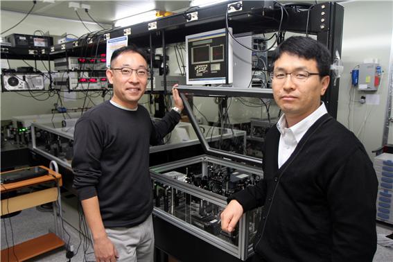 우리 학교 연구진이 인간의 눈으로 볼 수 없는 곳을 볼 수 있도록 하는 고출력 광대역 테라헤르츠 광원(T-ray) 개발에 성공했다. 이로써 숨겨져 있는 위험 물질 탐지, 포장 이후의 제품 검수, 피부 내 정상 조직과 암 조직의 구별 등을 보다 쉽게 할 수 있게 되어 보안장비, 전자기기, 의료기기와 같은 다양한 분야에 응용될 것으로 전망된다. 권오필 교수(분자과학기술학과, 사진 오른쪽)와 이상민 교수(에너지시스템학과, 사진 왼쪽)는 고출력 광대역 테라헤르츠 광원(T-ray)의 발생에 핵심이 되는 새로운 원천소재를 개발해냄으로써 테라헤르츠 광원의 발생효율을 획기적으로 증대시켰다고 밝혔다. 관련 논문은 세계적 학술지 네이처(Nature)의 자매지인 사이언티픽 리포트(Scientific Reports) 11월13일자 온라인판에 실렸다. T-ray라고 부르는 테라헤르츠파(THz)는 전자기파의 일종으로 기존의 광파나 엑스레이가 투과하지 못하는 물질을 선택적으로 투과할 수 있으며, 인체에 무해해 최근 들어 각광받고 있는 광원이다. 하지만 그동안 테라헤르츠 광원을 응용한 탐지 및 영상 장비가 널리 활용되지 못했던 이유는 대부분의 테라헤르츠 광원이 저출력에 광대역 영역을 포괄하지 못해 분석할 수 있는 물질에 한계가 있었기 때문이다. 그러나 아주대 연구팀이 이번에 개발한 유기소재를 이용하면 고출력의 광대역 테라헤르츠 광원을 만들 수 있다. 기존의 단점을 보완해 더 많은 물질을 보다 잘 볼 수 있게 된 것이다. 뿐만 아니라 이번에 새로 개발된 유기소재는 그동안 쓰이던 소재들에 비해 공정이 단순하고 비용이 많이 들지 않아 산업계와 의료계 등에서 보다 널리 응용·활용될 수 있을 것으로 기대된다. 일례로 공항이나 군사시설, 기업 등에 흰색 가루가 동봉된 편지봉투가 배달되었을 때 엑스레이를 비롯한 기존의 측정기술로는 편지봉투를 개봉하지 않고 어떤 물질이 들어있는 지를 판별하기는 어렵다. 하지만 테라헤르츠파를 이용하면 편지봉투를 그대로 투과하여 어떤 물질이 들어있는지를 분석할 수 있다. 그 물질이 가지고 있는 고유 패턴을 인식, 기존의 데이터베이스와 비교분석하는 과정을 거치면 위험 물질인지 아닌지를 알아낼 수 있어서다. 테라헤르츠 광원은 또한 액체류와 같은 단단하지 않은 물질에 대한 감식 능력이 뛰어나 액체류로 만들어진 위험 물질 탐지, 암조직과 같은 인체 피부 조직 검사 등에 활용될 가능성이 높다. 또 전기를 띄지 않는 물질은 투과하고 전기를 띄는 금속성 물질에는 강하게 반응하는 특징을 가지고 있어 기존의 탐지·분석 기법들을 보완하거나 대체할 수 있을 것으로 보인다. 기존의 엑스레이는 단단한 물질만을 탐지하고 영상화할 수 있었으며 전자기파 기술은 금속성 물질만을, 광학적 분석법은 눈에 보이는 영역만을 분석할 수 있었다. 권오필·이상민 교수는 “이번에 개발한 유기소재를 활용하면 기존의 제한된 테라헤르츠 기술을 보완할 수 있고 사람의 눈으로는 볼 수 없는 곳의 물체 및 위험물, 포장 후 제품 등의 탐지를 더욱 용이하게 할 수 있다”며 “앞으로 다양한 기술에 적용될 것으로 기대한다”고 말했다. 한편 이번 연구는 미래창조과학부와 교육부, 한국연구재단이 추진하는 ‘중견연구자 지원사업’과 ‘중점연구소 지원사업’의 지원을 받아 수행됐다. 아주대 연구팀의 이번 성과는 조선일보, 경향신문, 서울경제신문, 연합뉴스 등에 보도됐다.