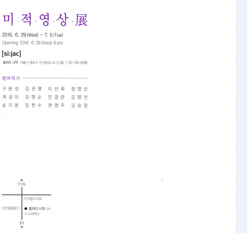 아주대학교 평생교육원 회화과정 수강생 전시회 '미적영상 展' 일 시: 2016. 6.29(WED) - 7.5(TUE) / Opening 2016.6.29(Wed) 6 pm 장 소: 서울시 종로구 인사동길 14-3 2층 / 02-735-6266 전시기획_최정미 관람시간 / 10:00am~06:00pm 참여작가: 구본성, 김권명, 이선화, 정영선, 계성미, 김영순, 민경란, 김영선, 송지윤, 임현수, 현영주, 김승정 아주대학교 평생교육원 회화(수채화&유화)과정 수강생들의 작품을 선보이는 전시 '미적영상 展'이 오는 6월 29일부터 7월5일까지 인상동 갤러리 시작 Gallery Sijac(서울시 종로구 인사동길 14-3 2층)에서 열린다. 이번 전시를 기획한 회화(수채화&유화)과정의 강사 최정미는 작가, 전시기획자, 경희대 겸임교수로서 2005년 아주대 평생교육원에서 일반인들을 대상으로 미술교육을 시작하다가 비전공자인 수강생들의 재능을 발견하고 취미위주의 작가를 생산하는 교육이 아닌 미술대학의 전문교육과정을 적용 2,3년의 기본교육을 시도하였다. '미적영상 展' 12명의 참여작가들은 교육자, 직장인, 주부, 개인사업자 등 다양한 직업군의 사람들이 모여 일주일에 3시간의 수업시간 외에 틈틈이 시간을 내어 작업하며 갈고 닦은 멋진 솜씨로 잠재되어 있는 미술창작활동의 꿈을 펼쳤다. 아주대학교 평생교육원 '회화'과정은 여름학기에도 개설되었으며, 매주 월요일 10시~13시, 19~22시로 진행된다. 그림을 사랑하고 꿈꾸어 왔던 사람이면 초보자부터 경력자까지 모두 참여 가능한 과정이다. [031-219-1564 / 아주대학교 평생교육원교학팀]
