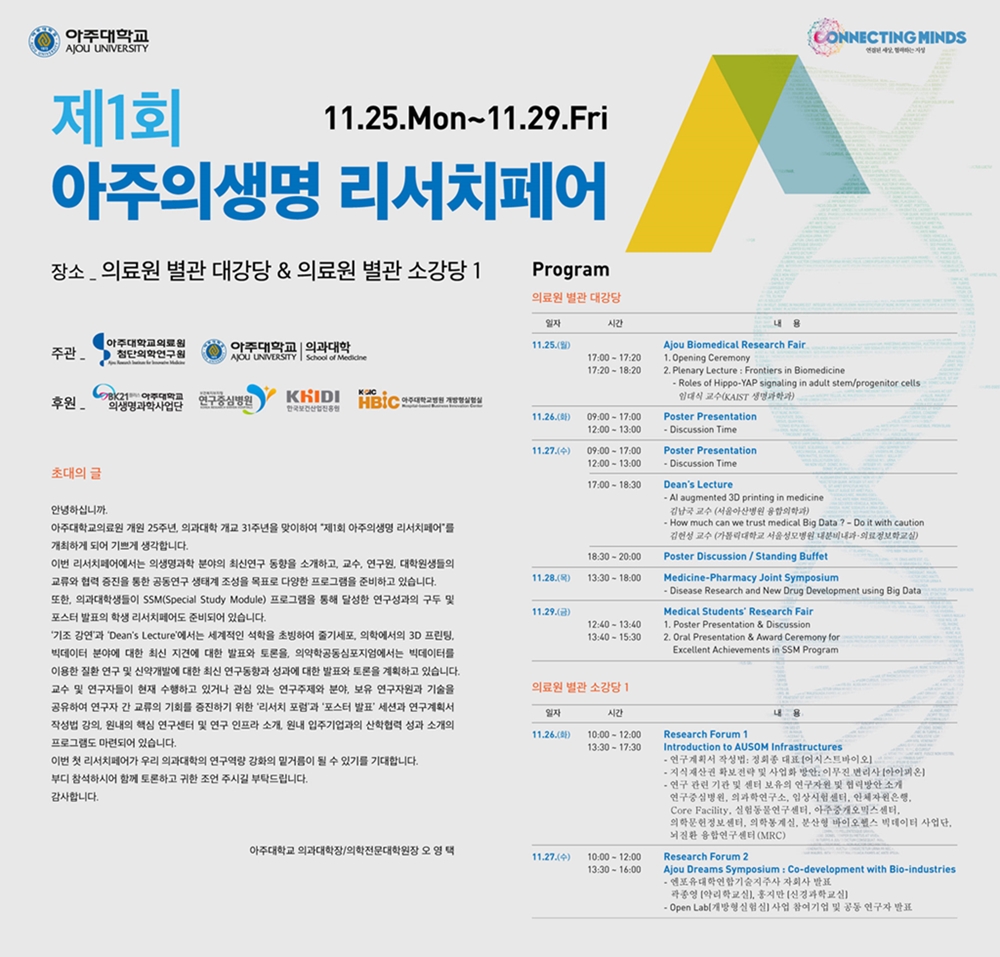 | 9147 | 행사 | 의과대학교학팀 | 2019-11-07 | ||