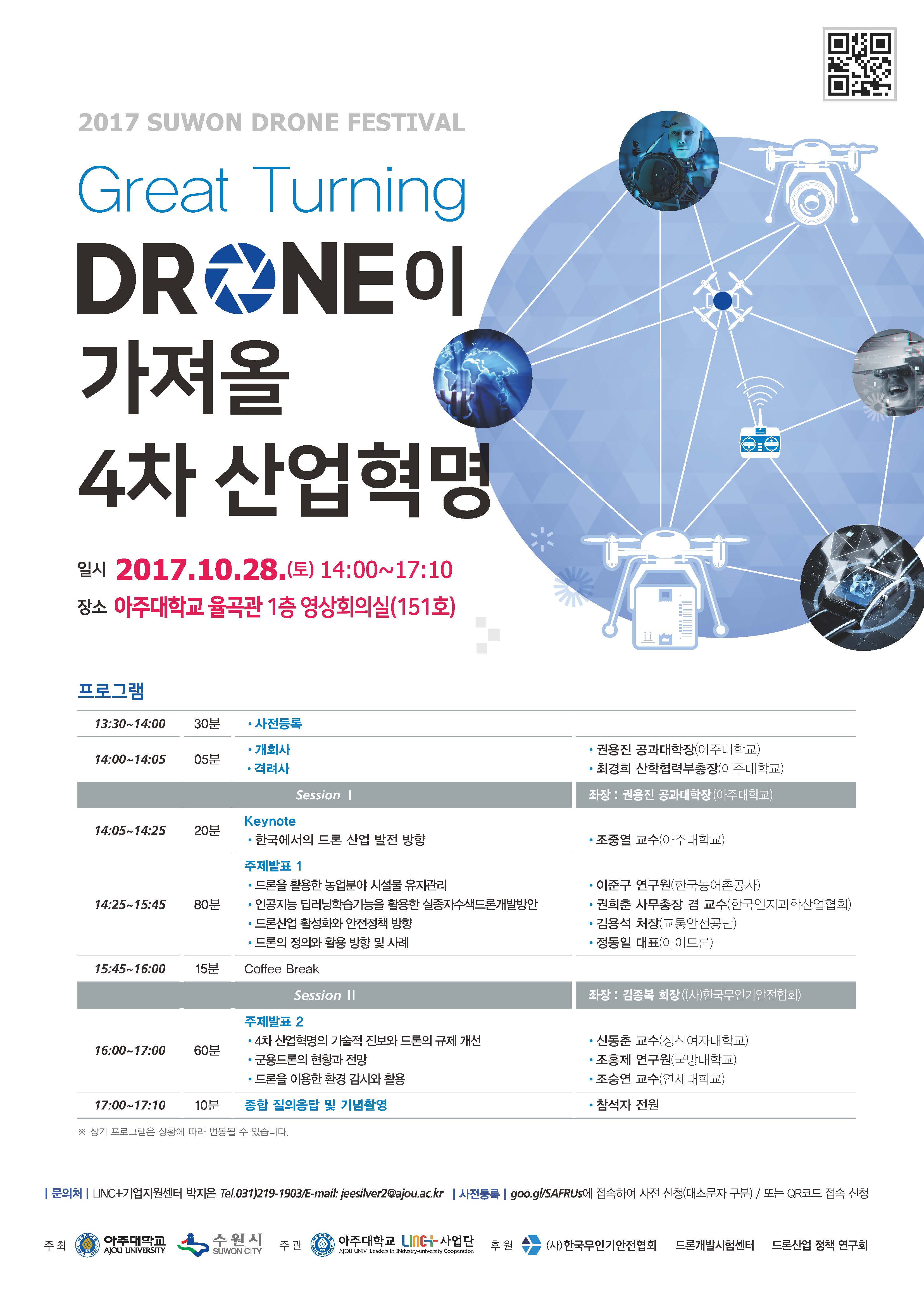 [LINC+] 2017 수원 드론 페스티벌 학술세미나 'Great Turning; DRONE이 가져올 4차 산업혁명' 참가 안내
