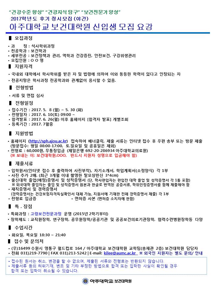 | 3703 | 입학 | 보건대학원교학팀 | 2017-05-16 |