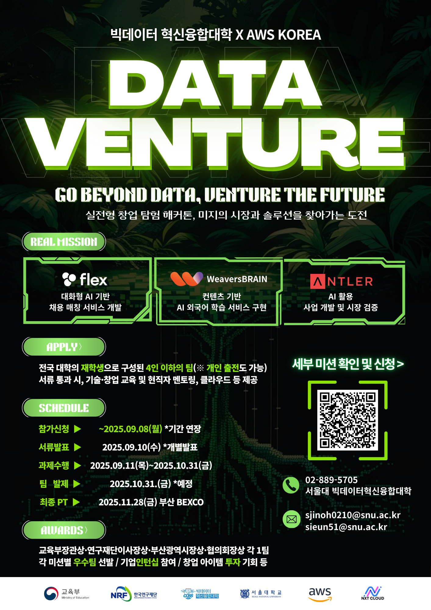 [빅데이터혁신융합대학] (~09/08)🏕2025 DATA VENTURE 문제 해결 챌린지🏕 참가자 모집 안내