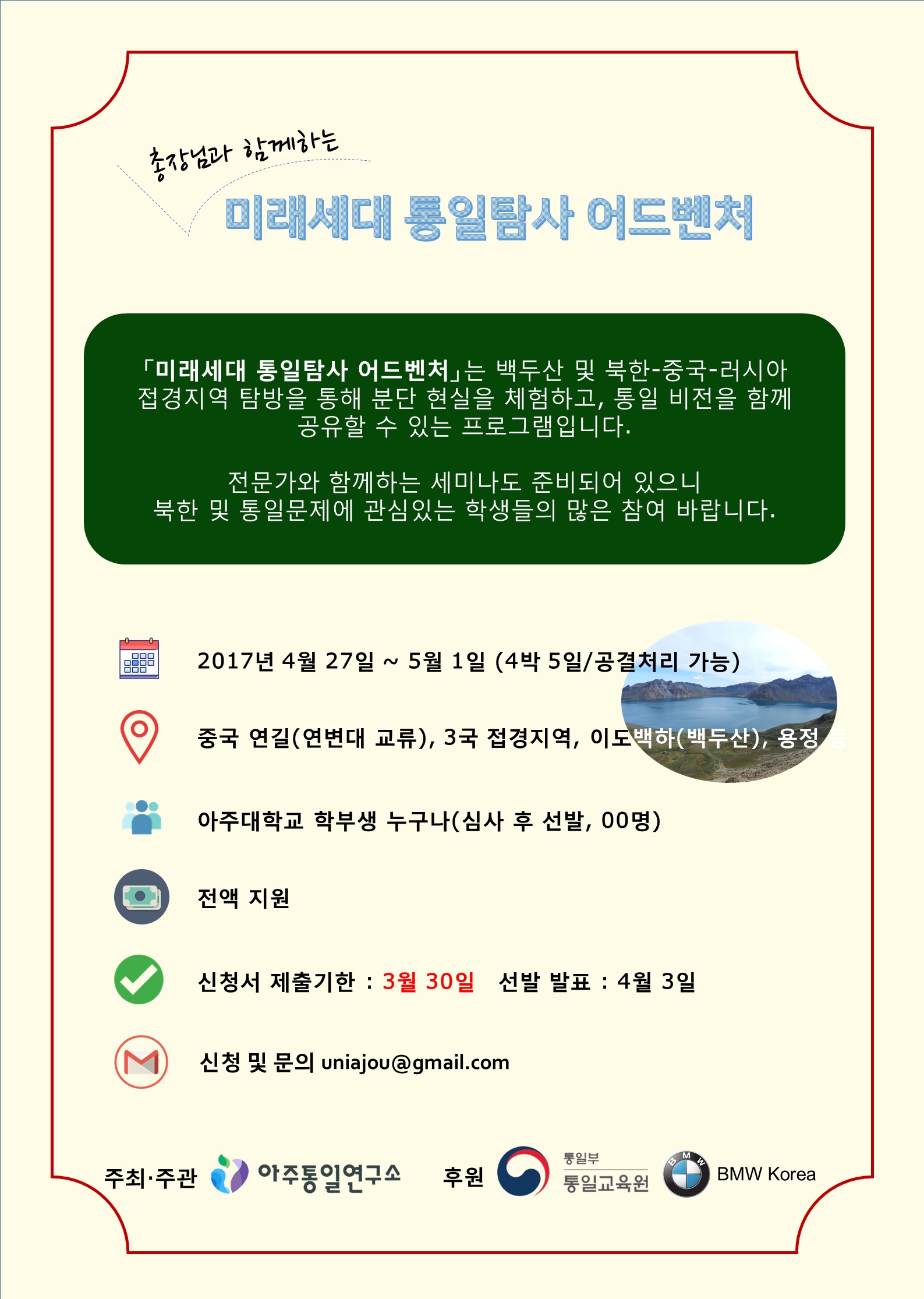 | 3419 | 행사 | 아주통일연구소 | 2017-03-21 | ||