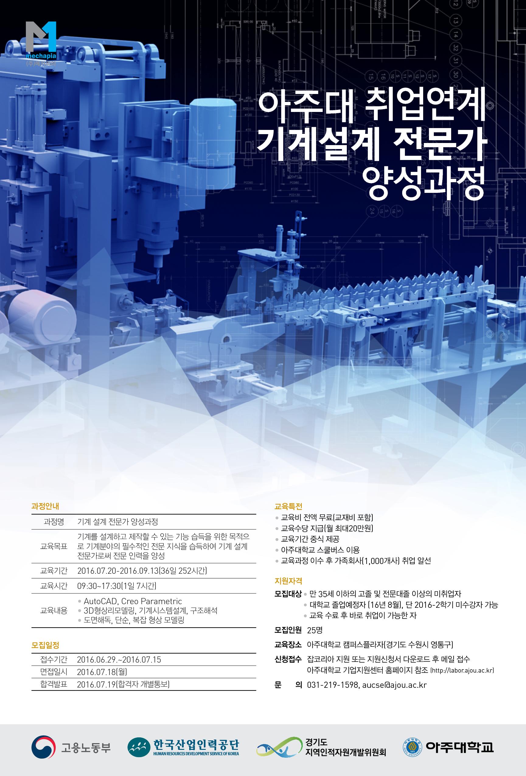 [취업연계] 기계 설계 전문가 양성과정 훈련생 모집!(~07/20)