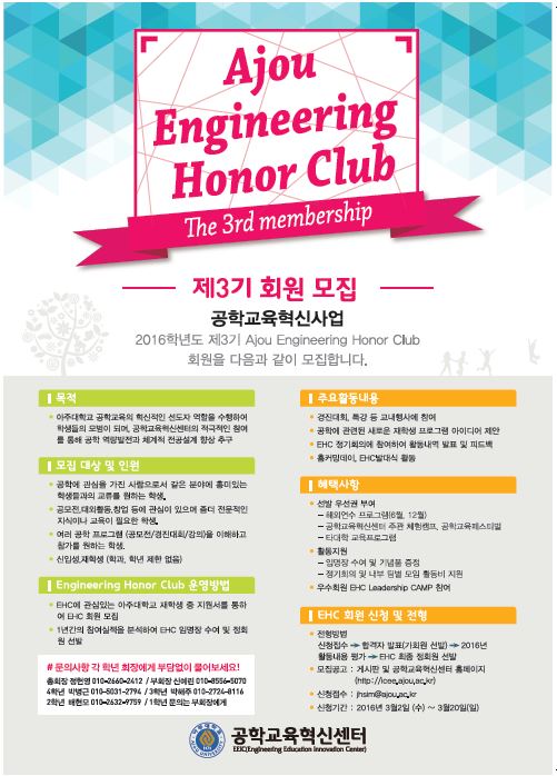 Ajou Engineering Honor Club (EHC) 제 3기 회원 모집 + 개강총회 안내