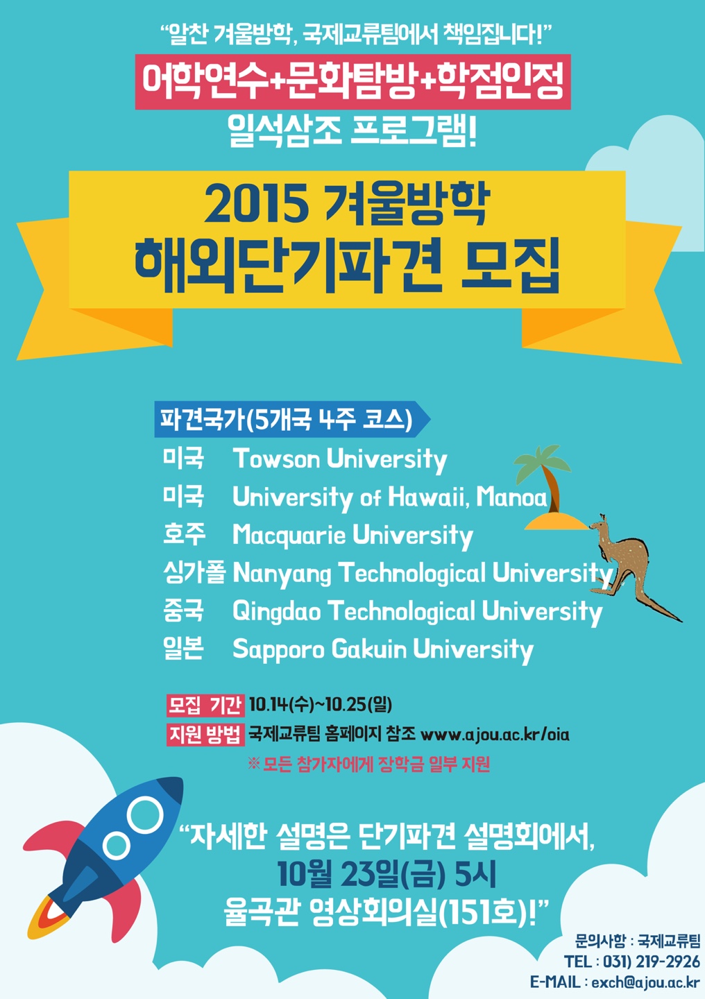 | 1014 | 장학 | 국제협력팀 | 2015-10-20 | ||