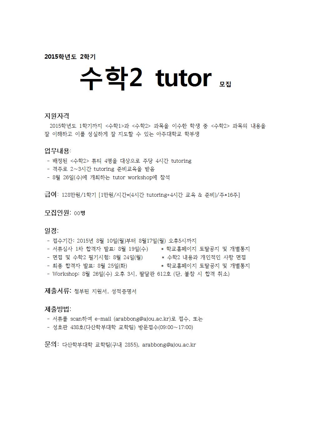[재공지]2015학년도 2학기 수학2 tutor 모집