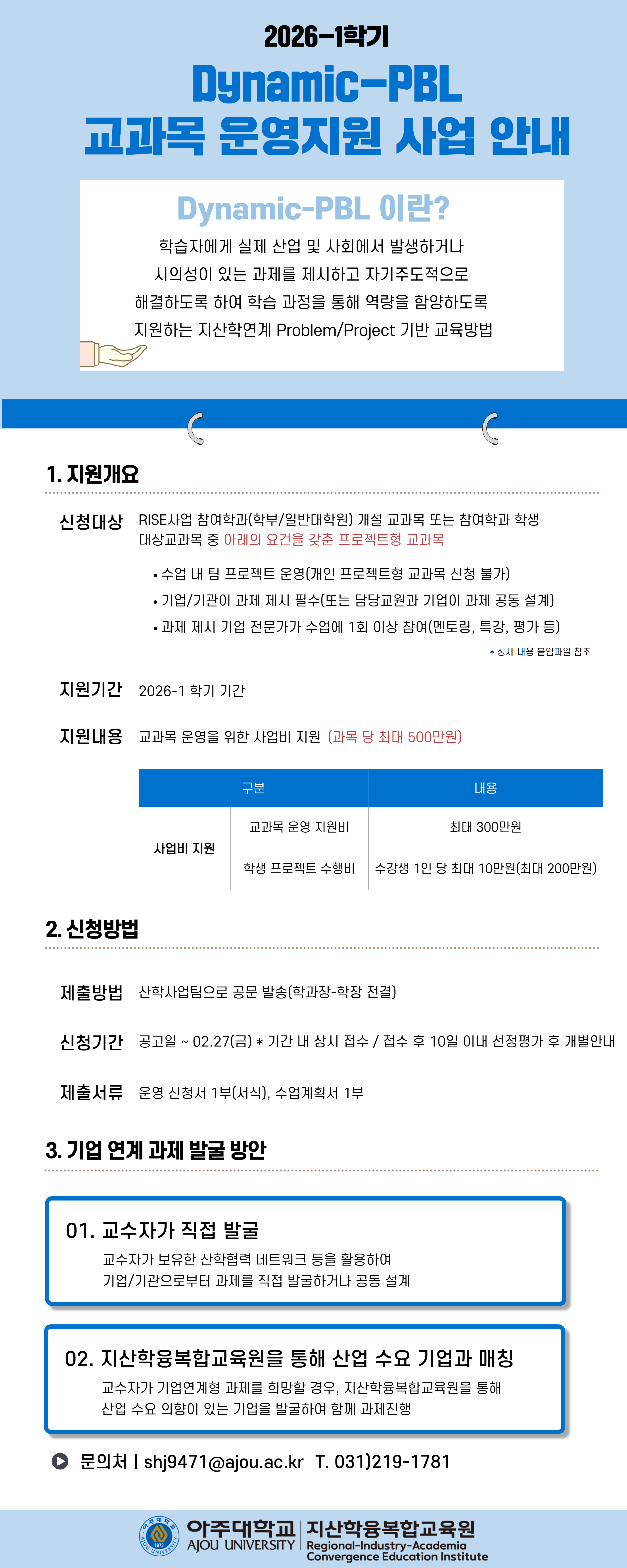 [RISE] 2026-1학기 Dynamic-PBL 교과목 운영 지원사업 신청 안내