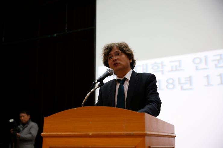지난 11월 30일, 우리학교는 성호관 강당에서 박형주 총장과 교직원들이 참석한 가운데 인권센터 개소식을 개최했다. 우리 학교는 상호 존중의 캠퍼스 문화를 조성하기 위해 그동안 분리해 운영하던 인권 상담 기능을 인권센터로 통합·강화한다. 이진국 인권센터 센터장(법학전문대학원 교수)의 센터 소개로 시작된 행사는 ▲박형주 총장의 환영사 ▲장성근 변호사(전 경기중앙지방변호사회 회장) 축사로 이어졌다.박형주 총장은 “이진국 센터장을 비롯한 여러 교수와 직원들의 수고와 헌신 덕에 인권센터가 출범할 수 있었다”며 “일선에서 아주 구성원들과 만나는 연구원과 상담사 선생님들의 노고에도 감사드린다”고 전했다.장성근 변호사는 “피해자 구제 정도에 머물렀던 인권에 대한 접근이 정책 수립까지로 달라지고 있는 만큼 인권센터의 역할이 매우 중요하다”며 “다양한 가치관이 충돌하는 최전선이 될 인권센터의 출범을 환영하며, 성원을 보낸다”고 말했다.이어 서울대 인권센터장을 역임한 한인섭 한국형사정책연구원장(서울대 법대 교수)의 개소 기념 특강이 이라는 제목으로 진행됐다. 개소식 본 행사 이후에는 신학생회관 4층에 위치한 인권센터의 현판식이 마련됐다. 인권센터는 인권 보호와 권익 향상을 위한 여러 상담과 사안 처리를 담당하는 센터로 올해 신설됐다. 총장 직속 기구로 운영되며 인권 상담 및 교육·연구 뿐 아니라 성 평등 상담 및 지원, 장애학생 지원 등을 담당한다.* 인권상담소 : 031)219-1733 / humanrights@ajou.ac.kr / 신학생회관 417호