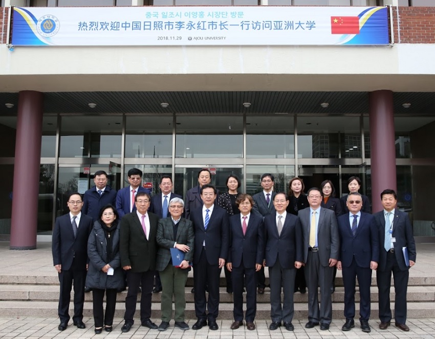 아주대 국제대학원 졸업생인 이영홍 중국 일조시 시장이 우리 학교를 방문해 교류 방안을 모색했다.이영홍 중국 일조시장을 비롯한 시 관계자들은 지난달 29일 우리 학교를 방문했다. 이 시장 일행은 우리 학교 박형주 총장과 만나 중국 일조시의 현황을 공유하고 향후 추진 가능한 여러 협력 방안에 대해 이야기를 나눴다. 이번 방문에는 바이원후이 산둥외국어대학 이사장을 비롯해 두린 산둥외국어대학 부총장, 스펑 일조시 인민병원 부원장 등이 함께해 다각적인 측면에서 논의가 이뤄졌다. 유희석 아주대학교의료원장을 비롯한 병원 관계자들도 함께 자리했다.일조(日照)시는 중국 산동성 남동부에 위치한 도시로, 면적은 경기도 면적의 절반에 달하는 5300km²다. 일조시 인구는 300만명이다. 이영홍 일조시장은 일조시 당위원회 부서기를 겸하고 있다. 이영홍 시장은 지난 2002년 우리 학교 국제대학원에서 수학, 국제경영학 석사 학위를 받았다. 당시 맺은 인연으로 이 시장은 지속적으로 우리 학교에 관심을 가져왔다.방문 행사는 ▲아주대 소개 ▲아주대병원 소개 ▲일조시 소개 ▲캠퍼스·의료원 투어 ▲실무미팅 등으로 진행됐다. 중국인 유학생을 비롯한 여러 국가의 유학생들이 주최한 환영식도 마련됐다. 이 시장은 타지에서 공부하고 있는 외국인 학생들을 만나 이야기 나누고 격려했다.이날 학교는 이영홍 시장에게 를 수여했다. 이 상은 우리 대학 동문 가운데 탁월한 리더십으로 모교의 위상을 높인 사람에게 주어지는 상이다. 이영홍 시장은 과거 산동성의 다양한 부문에서 경제분야 혁신을 이끌었을 뿐 아니라, 탁월한 리더십을 발휘해 외국기업 유치와 주민생활 발전에 공헌했다. 박형주 총장은 "오늘 만남이 일조시와 아주대학교의 협력 사업 추진에 의미 있는 첫 걸음이 될 것"이라며 "향후 서로에게 필요한 분야에서의 협력과 연결을 통해 지속적인 교류를 해 나갈 수 있을 것으로 기대한다"고 말했다. 한편 이영홍 시장은 우리 학교 재학 시절 지도교수였던 은사와의 깜짝 만남을 가졌다. 이창환 교수(경영학과)와 만난 이 시장은 졸업 앨범에 찍힌 서로의 모습을 확인하고 안부를 묻는 등 뜻깊은 시간을 가졌다.