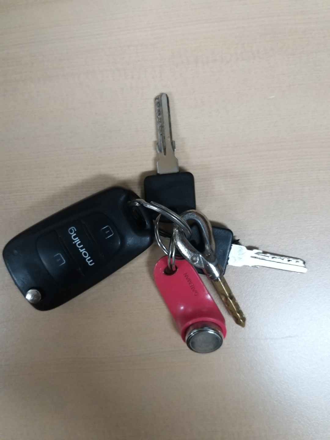 정문 쪽 가로수길에서 열쇠가 3개 달린 자동차 morning 차키를 습득했습니다.