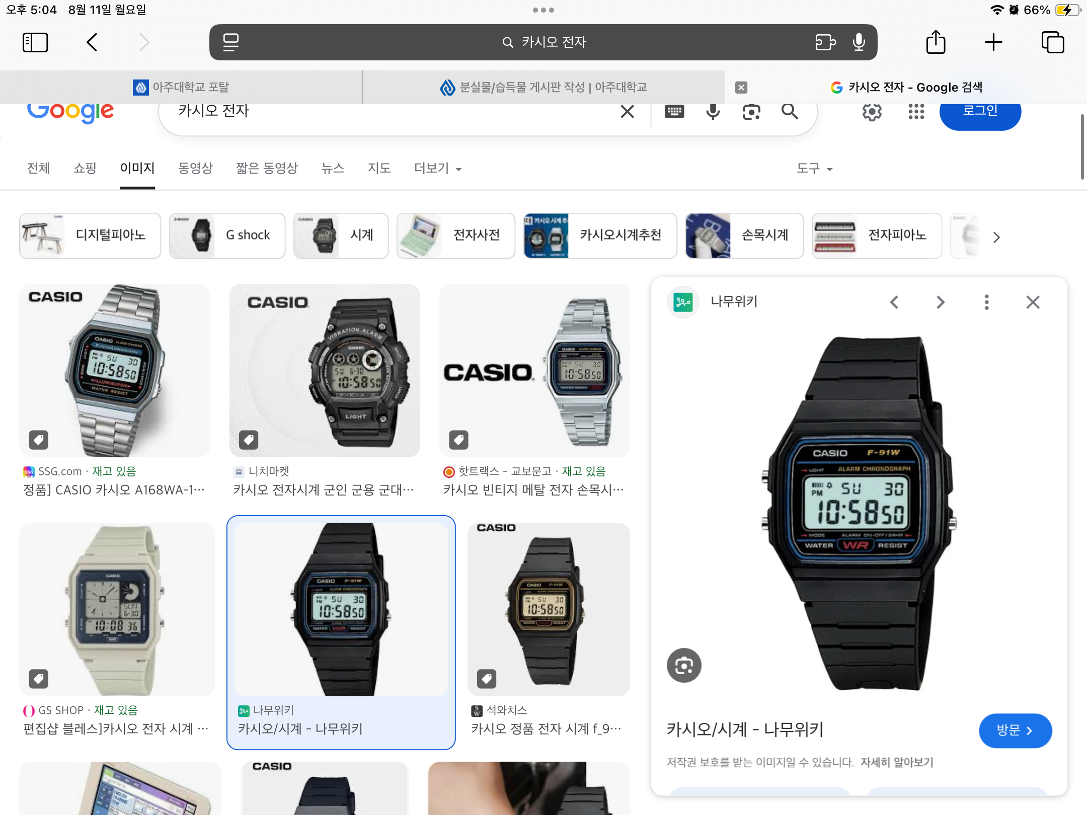 검정색 시계 카시오 전자 찾아요