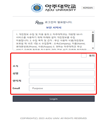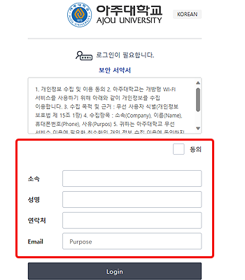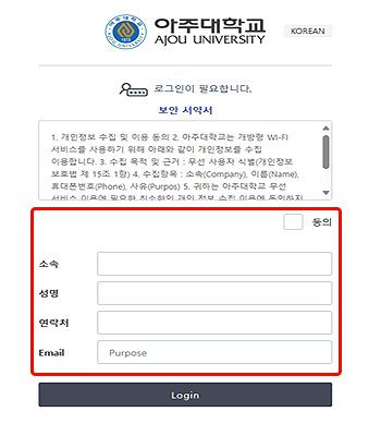 4. 관리자에게 발급 받은 ID/PASSWORD 입력