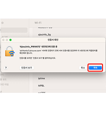 6. “AjouUniv_PRIVATE”에 연결됨을 확인한 후