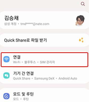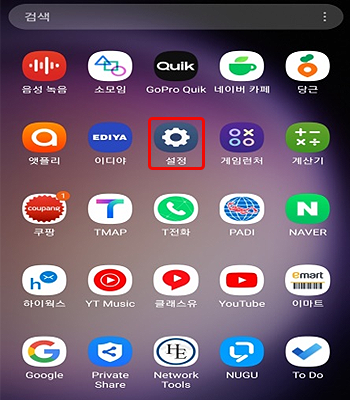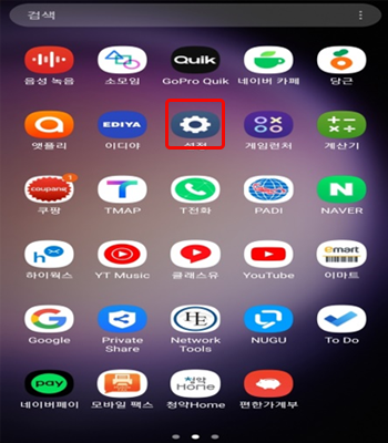 1.설정 아이콘을 클릭하여 설정화면으로 이동