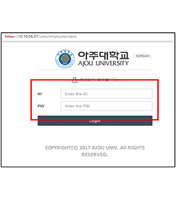3. 관리자에게 발급 받은 ID/PASSWORD 입력