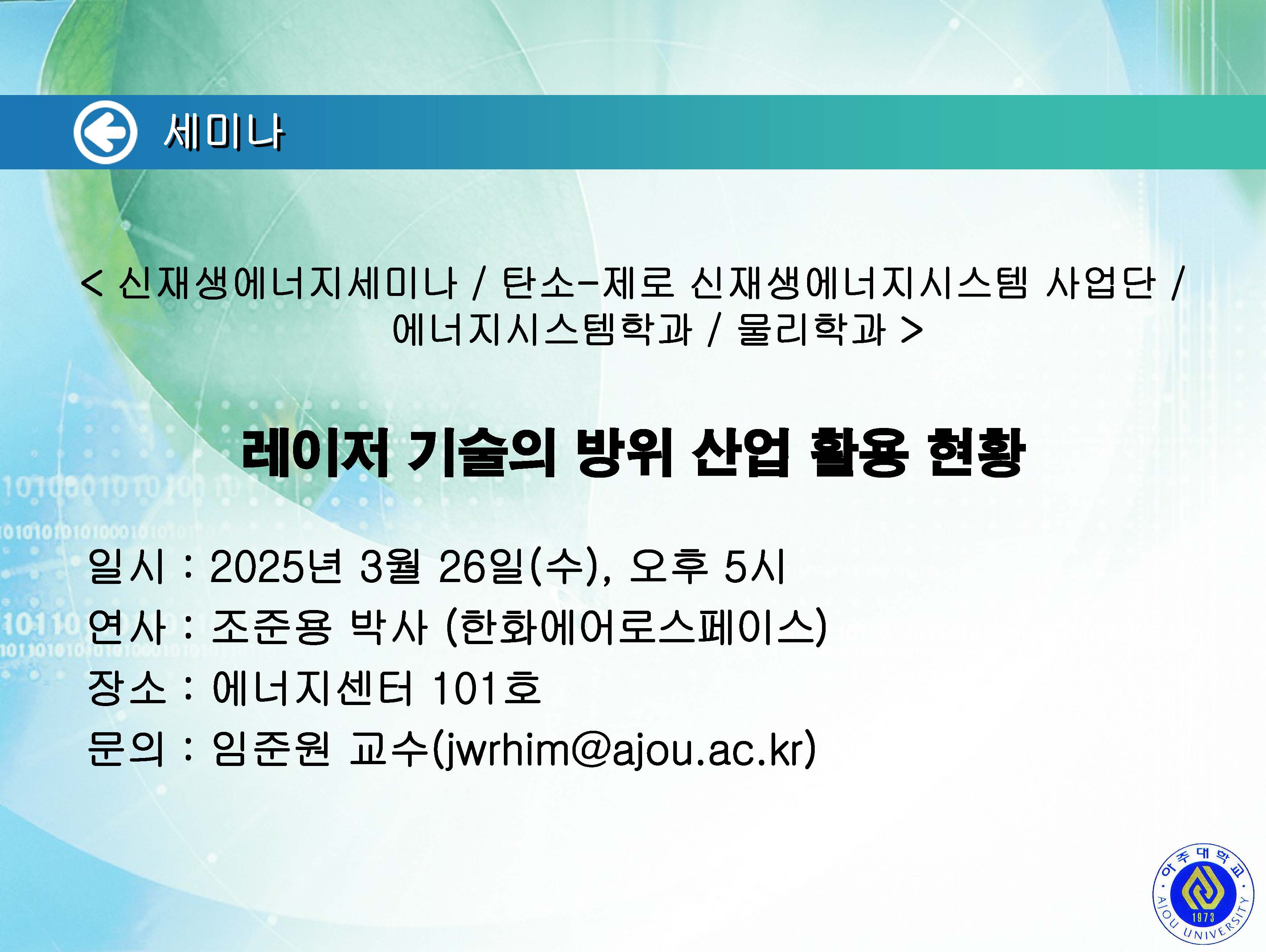 | 1727 | 세미나/포럼 | 교내 | 2025-03-24 |