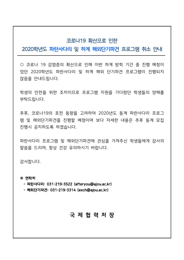 | 437 | Outgoing | 국제교류팀 | 2020-04-22 | ||