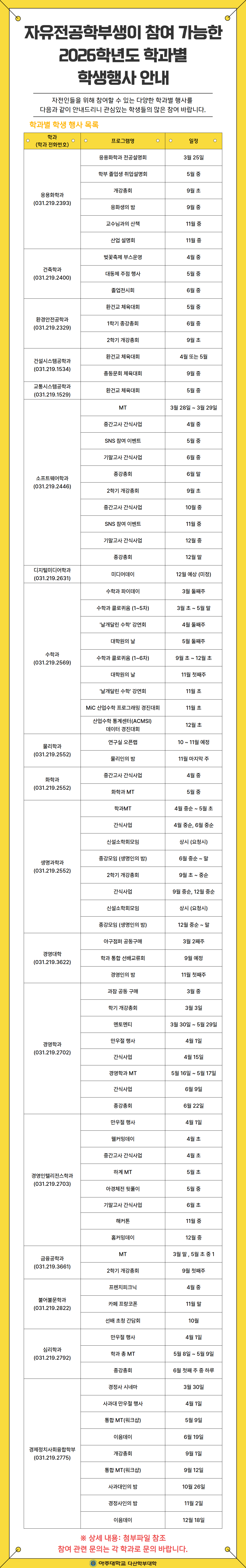 자유전공학부생이 참여 가능한 2026학년도 학과별 학생행사 안내